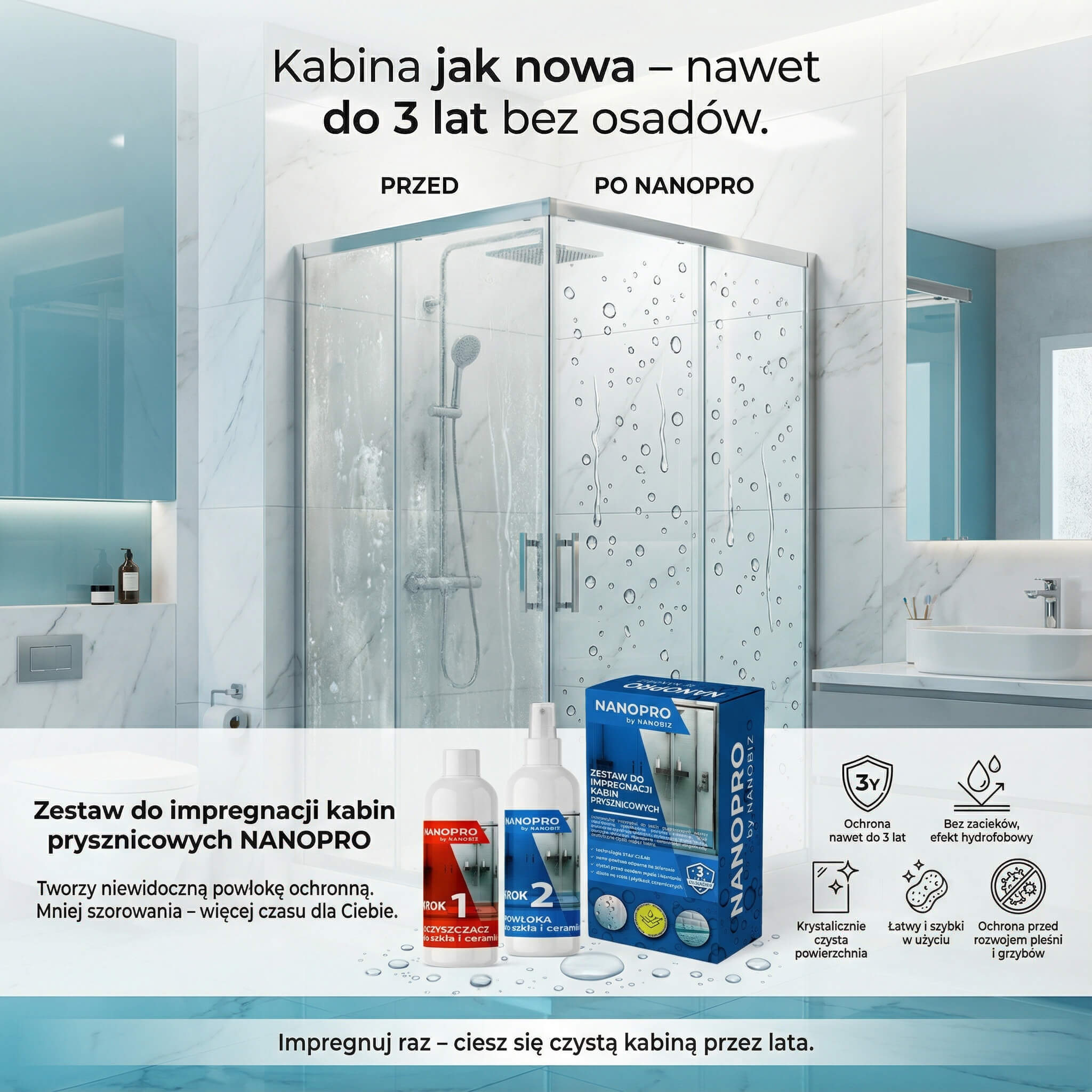 Dlaczego warto stosować NANOPRO zestaw do impregnacji kabin prysznicowych: