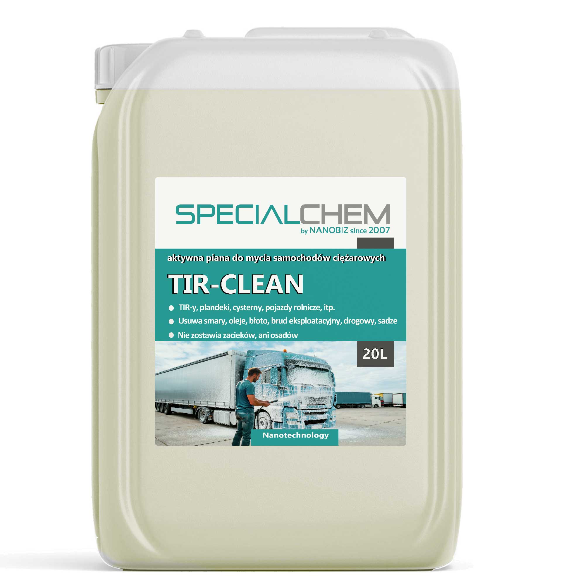 SPECIALCHEM TIR CLEAN to przełomowa aktywna piana do mycia ciężarówek, która redefiniuje standardy czystości w transporcie ciężkim. Ten silnie zasadowy koncentrat wykorzystuje zaawansowaną jednofazową formułę do skutecznego usuwania nawet najbardziej uporczywych zabrudzeń. Preparat został specjalnie opracowany dla skrajnie zabrudzonych powierzchni w pojazdach komercyjnych i przemysłowych.